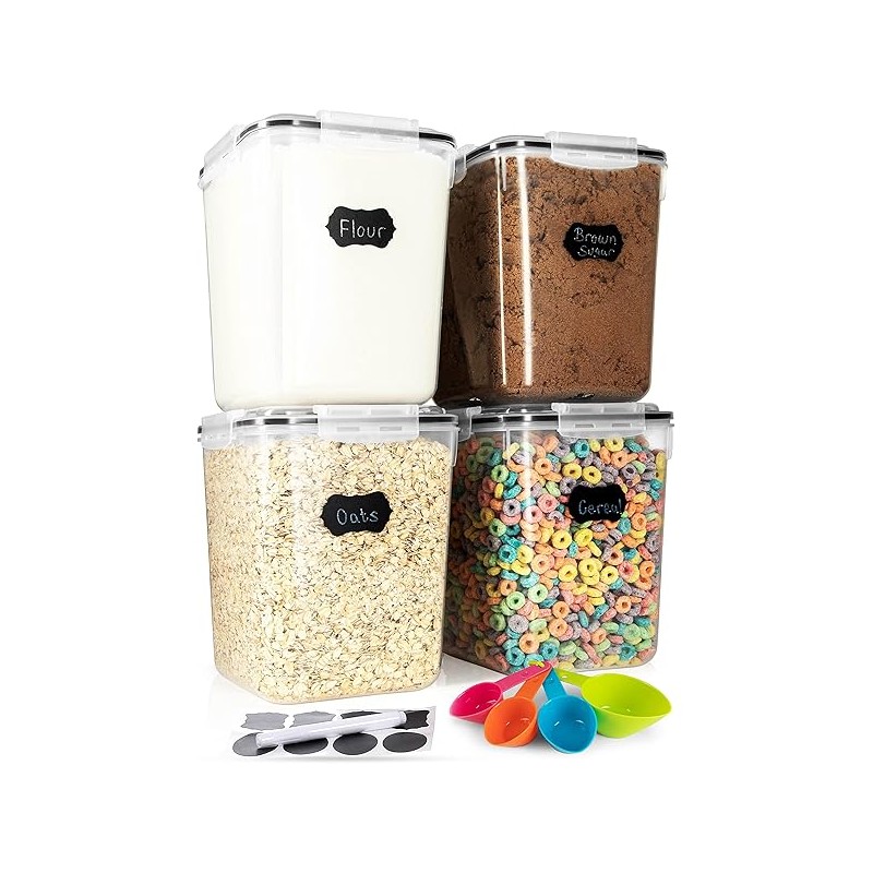 Flour Sugar Storage Containers (5.3L/4pk) Great Rice Canisters Sets For The Kitchen pantry, Large Food Storage Containers With Lids Airtight