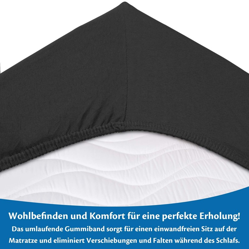 • The fitted sheet with elastic corners adapts perfectly to the dimensions of your mattress without slipping. Thanks to the continuous elastic along the hem, no annoying wrinkles form, so you can sleep peacefully.