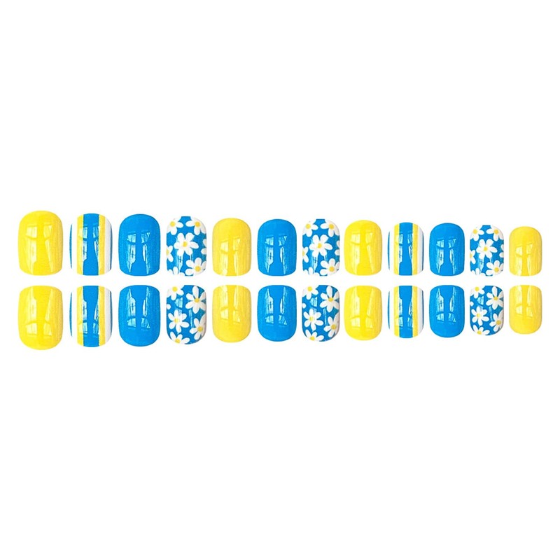 - Material:These yellow blue spring fake nails are made of healthy ABS material, no pungent odor, not easy to break, harmless to your nails and body, you can be safe to use.
