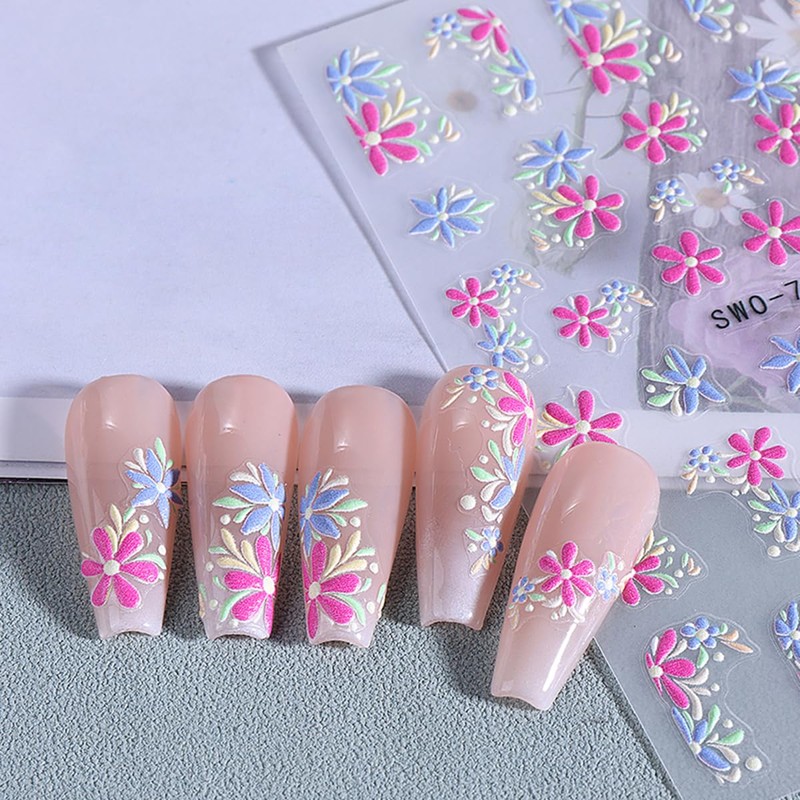 - [Spring Nail Art Stickers] You will get 3 sheet 5D self-adhesive flower nail art decals self-adhesive flower nail sticker in one package. you will create a unique nail art through DIY.