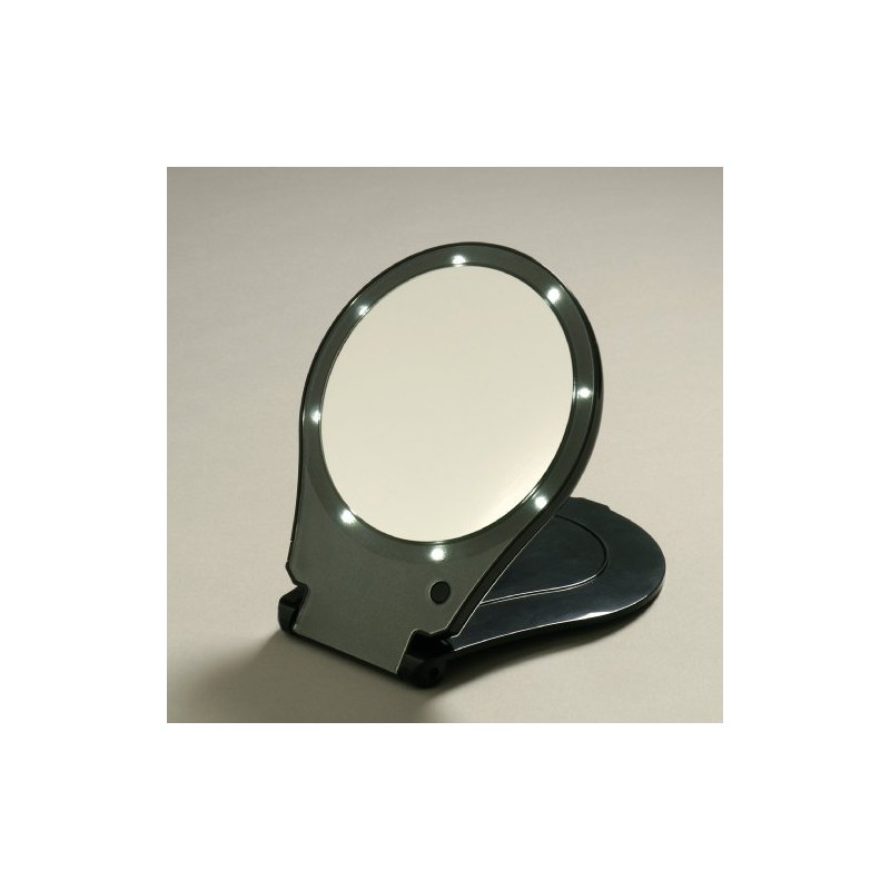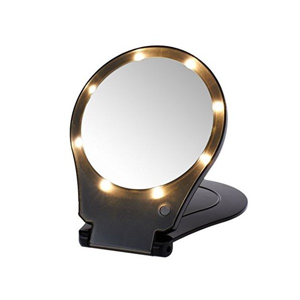 Floxite Espejo iluminado para viaje y hogar, 5X, Negro