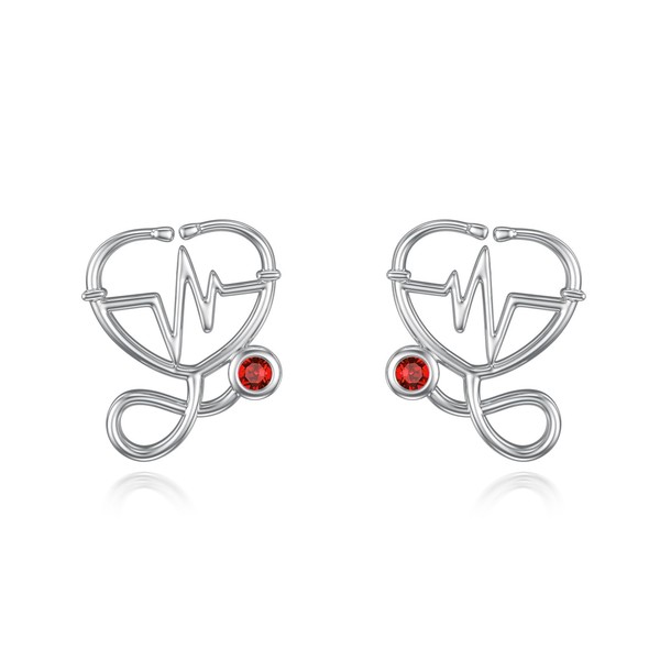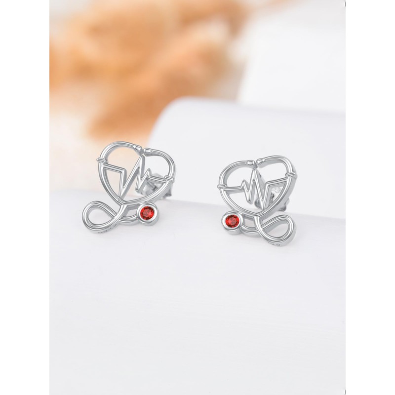 - 【Stethoscope Heart Design】This nurse earrings is designed with heartbeat and red birthstone in heart.This is a unique and special jewelry gift for nurse/docte