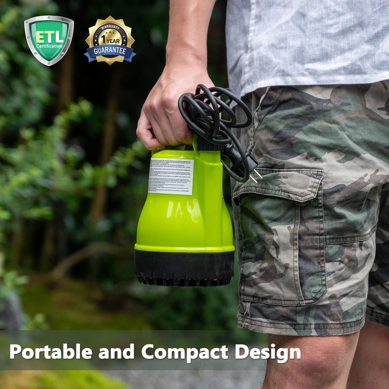 - ✔️【SIMPLE PLUG-IN CONTROL】It works by manually plug in/out operation, the minimum water level to start working is around 6", and it can remove water down to 0.6". Just don't risk the pump to be dry running.