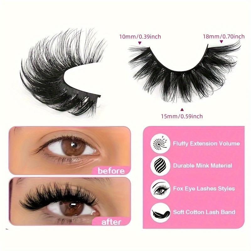 Fluffy False Eyelashes, 7 Pairs Wispy Cat Eye Look Faux Lashes, Natural Curling Eye Makeup Strip Lashes, Full Volume Eyelash for Lashes Extensions, Christmas Gift