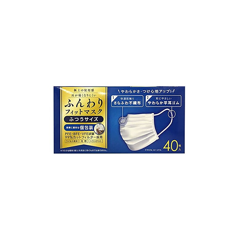 Fluffy Fit Mask, Individually Packaged, Regular Size, 40 Pieces