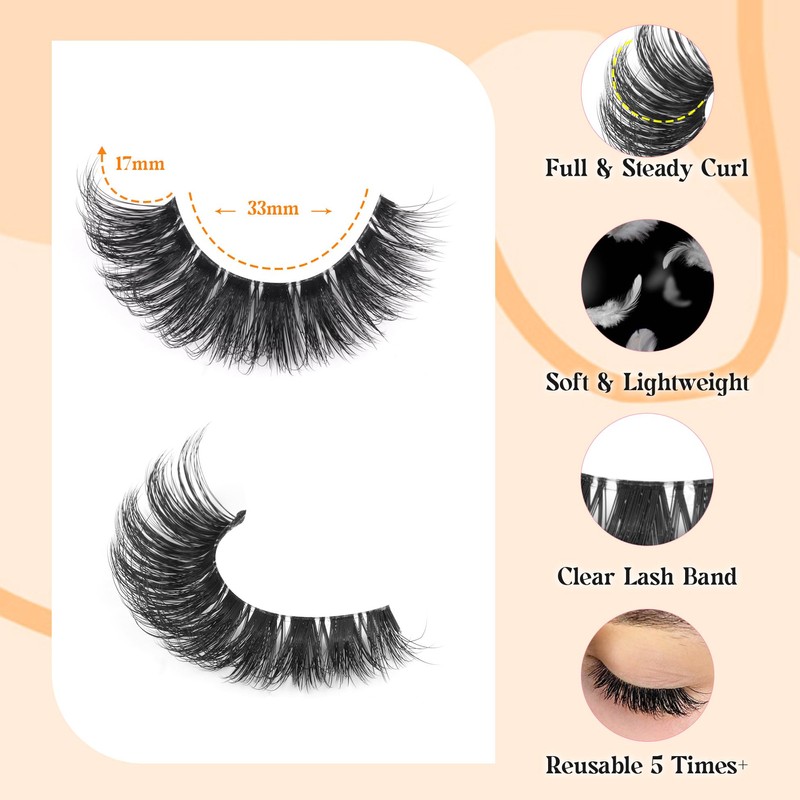 - 【Soft & Lightweight & Reusable】: The wispy false eyelashes adopt cruelty-free premium silk synthetic fiber and updated design, softer, more lightweight, reusable over 5 times and infinitely closer to natural eyelashes!
