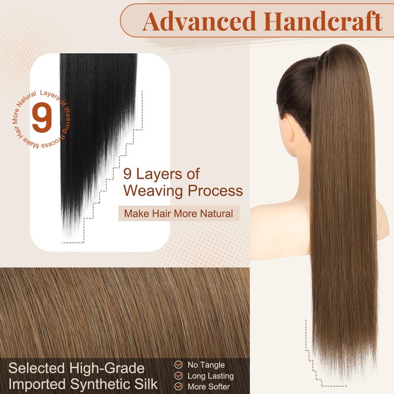 - 💖[Excellent handwork]The ponytail extension is completely hand-woven, using a nine-layer continuous weaving process, which makes the hair layers more natural and look more like real hair, increasing the wearing comfort