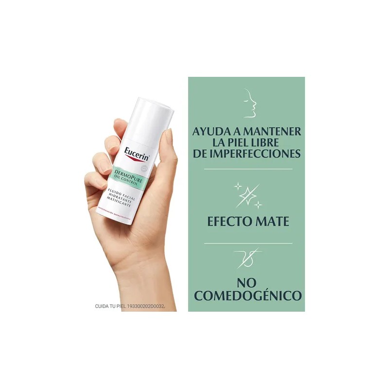El innovador Eucerin Dermopurifyer OIL CONTROL Fluido Facial Hidratante Matificante actúa con efectividad sobre las imperfecciones y los puntos negros, y ayuda a controlar esa piel difícil y propensa al acné y a sufrir imperfecciones. El fluido matificante contiene: