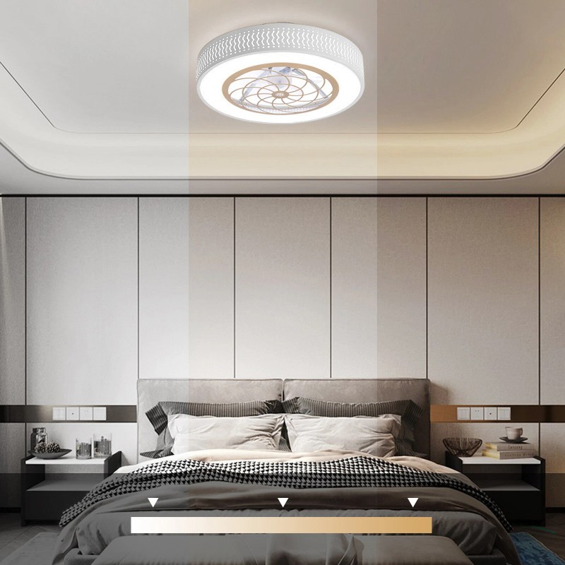 Flush Mount Ceiling Fan with Light Modern Round Enclosed Ceiling Fan Lighting