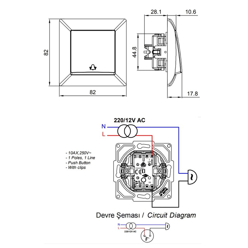 • Installation: flush-mounted installation in dry rooms according to IP20