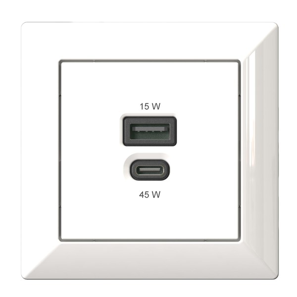 - 45 watt USB-C and 15 watt USB-A power delivery fast charging function, perfect as a charging station for laptops, tablets, smartwatches, and other small electronic devices with USB-C socket. Installation in the kitchen, living room, bedroom, hallway and more