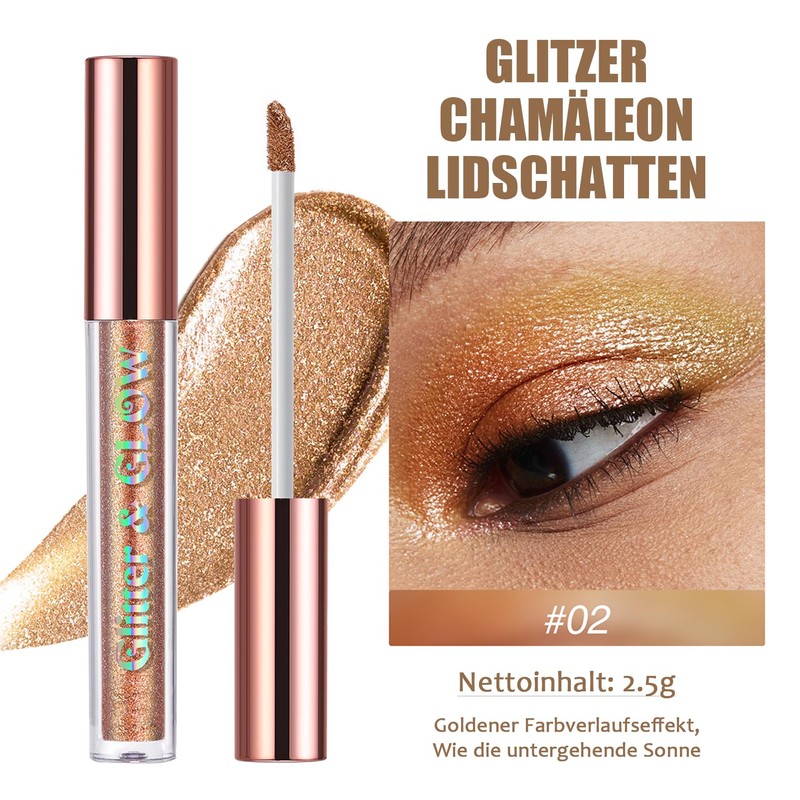 - 【Mehrzweck Liquid Eyeshadow】Er kann in einer dünnen Schicht aufgetragen werden, um den Augenlidern und -winkeln Glamour zu verleihen, oder in mehreren Schichten verblendet werden, um die Augen zum Strahlen zu bringen. Er kann auch als Eyeliner, Highlighter oder in Kombination mit Lippenstift verwendet werden.