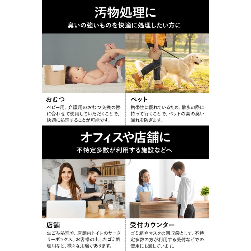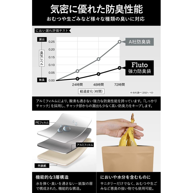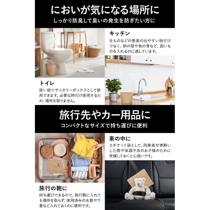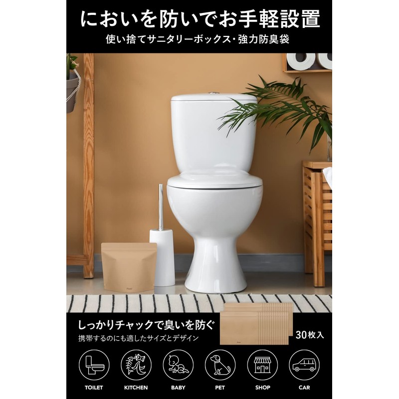 Fluto Strong Odor Resistant Bags, Zippered, Sanitary Box, Disposable Deodorizing Bags, Trash Bags, Medium, Natural, Pack of 30