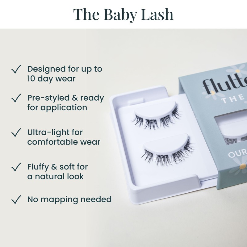 FlutterHabit The Baby Lashes, DIY Lash Extensions [Up to 10 Day Wear], Short & Neat Doll-Eyed Cluster Lashes, Salon Quality Eyelashes Extensions, Natural Lashes, No Lash Glue Included