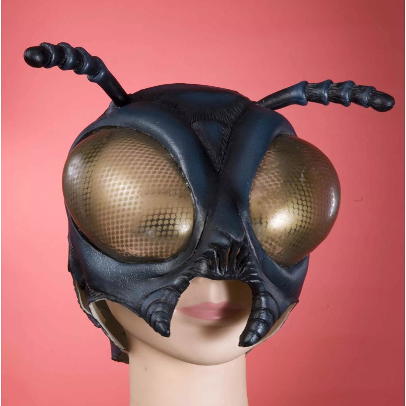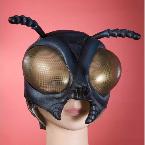 Fly Costume Mask Man-Sized Fly Mask chinless fly monster halloween mask for adults. giant gold eyes.