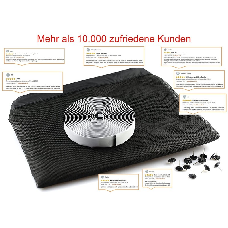 - No drilling required – with the included Velcro strap, you can attach the fly net door without tools. In addition to the fly net, drawing pins and practical instructions are included (English language not guaranteed).