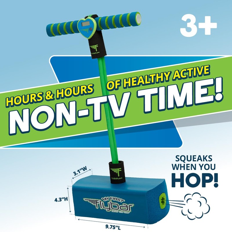 - Boing, boing, squeak! The My First Flybar foam pogo stick is hours of healthy, bouncy fun. Crafted from durable foam, this is an ideal first pogo stick for kids; each jump makes a fun squeaky sound