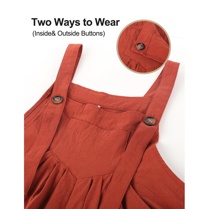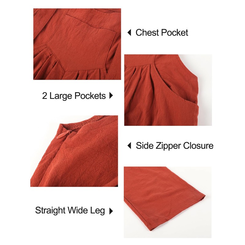 Flygo Womens Overalls Loose Fit Cotton Linen Bib Overall Wide Leg Jumpsuit Rompers with Pockets(Rust-M)