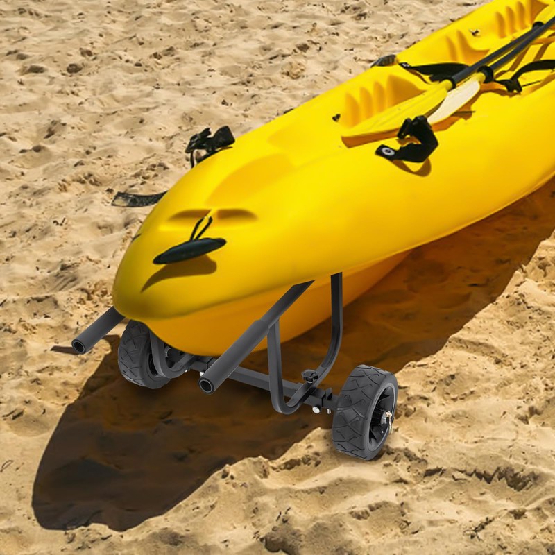- Thoughtful Design: High-density elastic sponge is attached to the handle to improve a more stable grip and prevent the sailboat from falling and bumping during transportation. The large 8-inch textured wheels are designed to allow it to move smoothly even on the beach. In addition, its lack of scupper posts prevents damage to the kayak's scrubber holes.