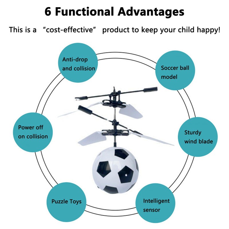 - Multiple protection flying ball toys: 1. The ball automatically detects the objects underneath and flies away after 3-5 seconds when you turn it on to ensure safety. 2. When the flying ball falls on the ground or collides with other objects, it stops swirling.
