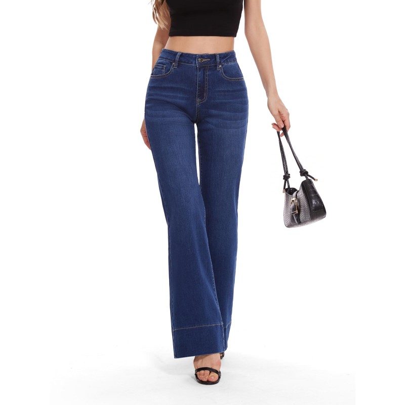 FLYING BANANA Women's Flare High Waisted Bell Bottom Wide Leg Baggy Stretch Denim Jeans (Dark Blue, 10)