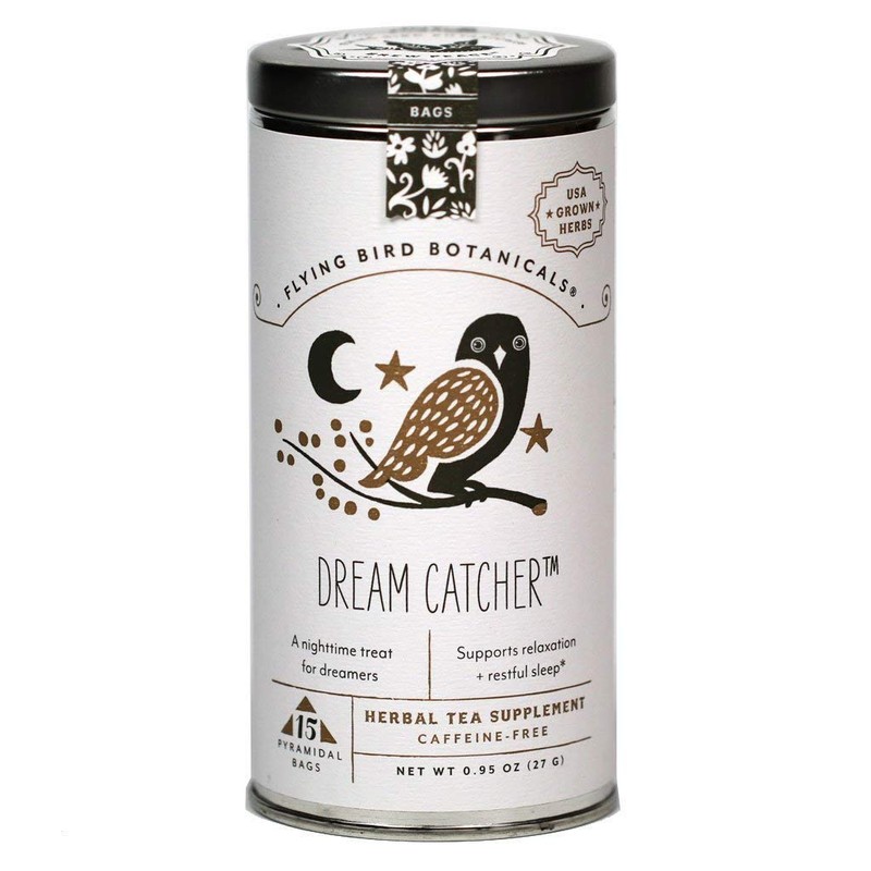 • Flying Bird Botanicals Dream Catcher is a caffeine-free Chamomile herbal tea to soothe the body before bedtime.