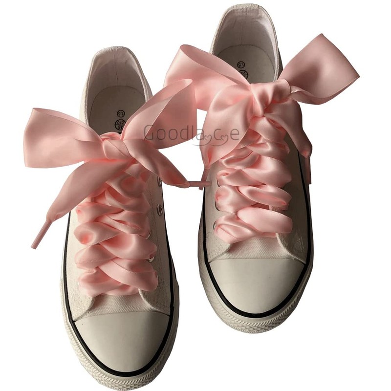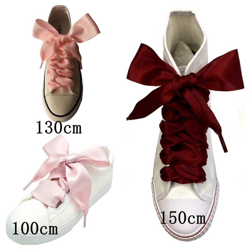 Flyingfish Wide Ribbon Satin Shoe Laces 4 cm Flat Shoelaces, White