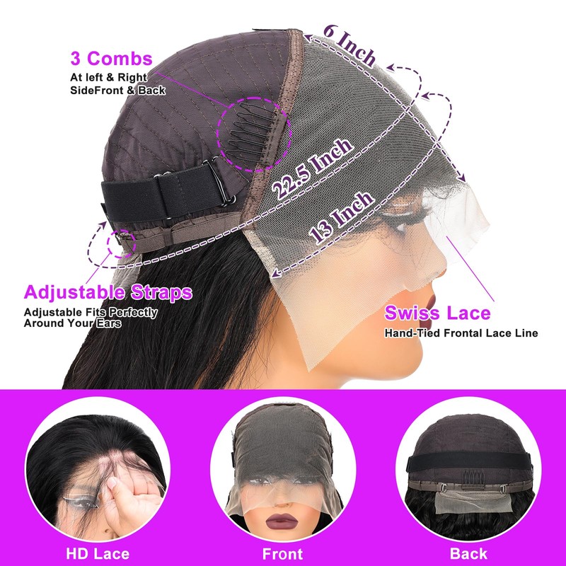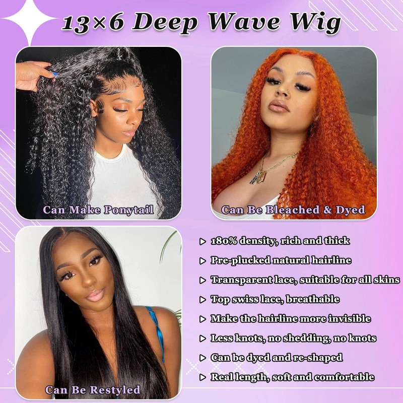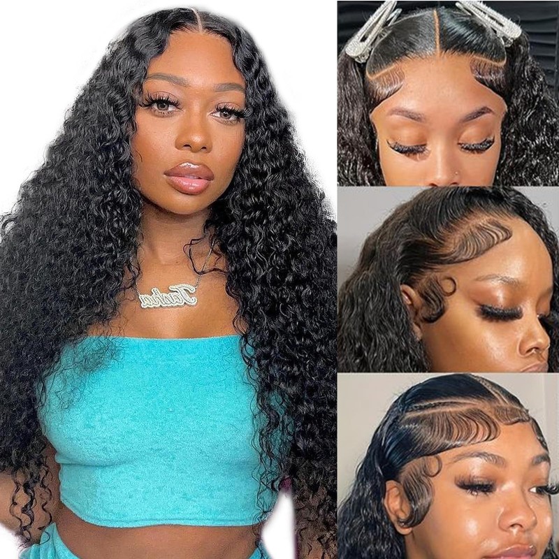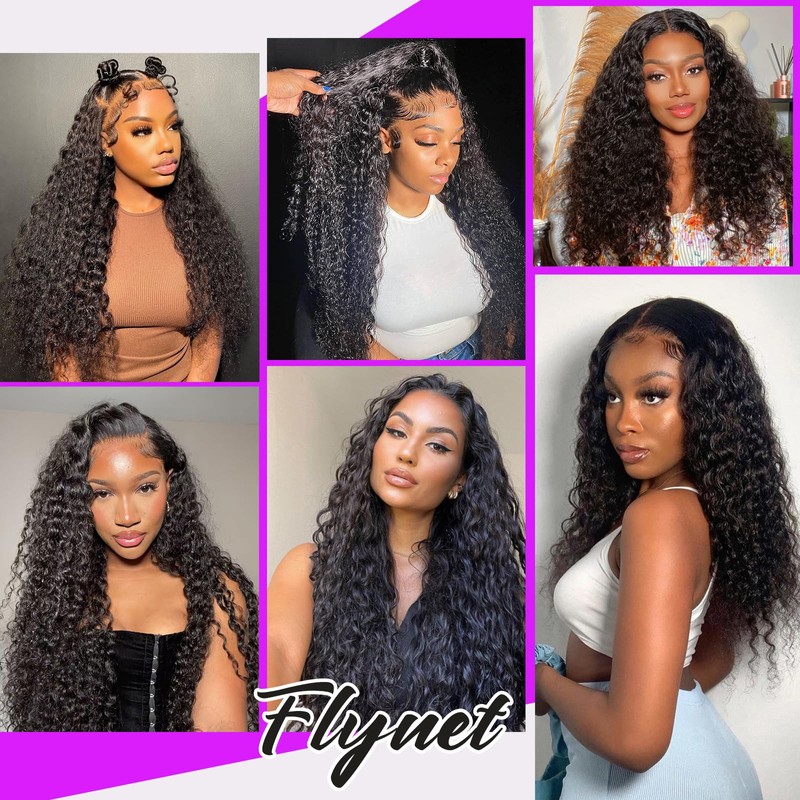 Flynet 13x6 Deep Wave Lace Front Wigs Human Hair 200% Density Deep Curly Frontal Glueless HD Lace Wigs Human Hair Pre Plucked with Baby Hair for Women(28inch,Natural Black