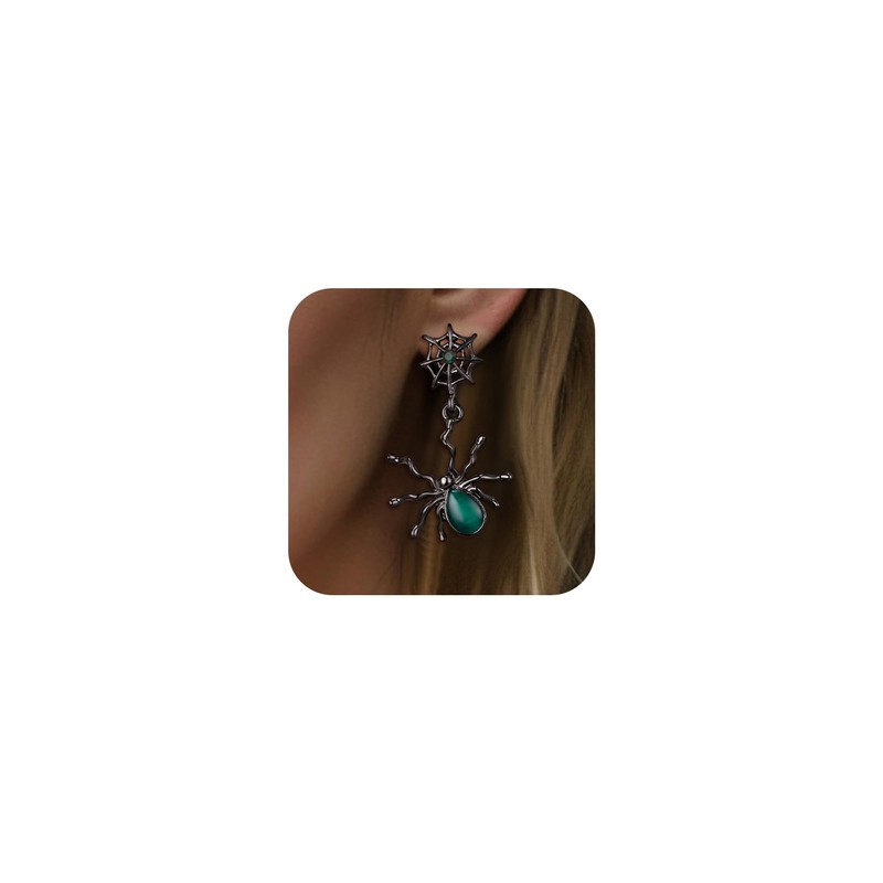 Flyonce Statement Spider Earrings for Halloween Rhinestone Crystal Punk Gothic Web Drop Dangle Costume Jewelry for Cospaly Party Green