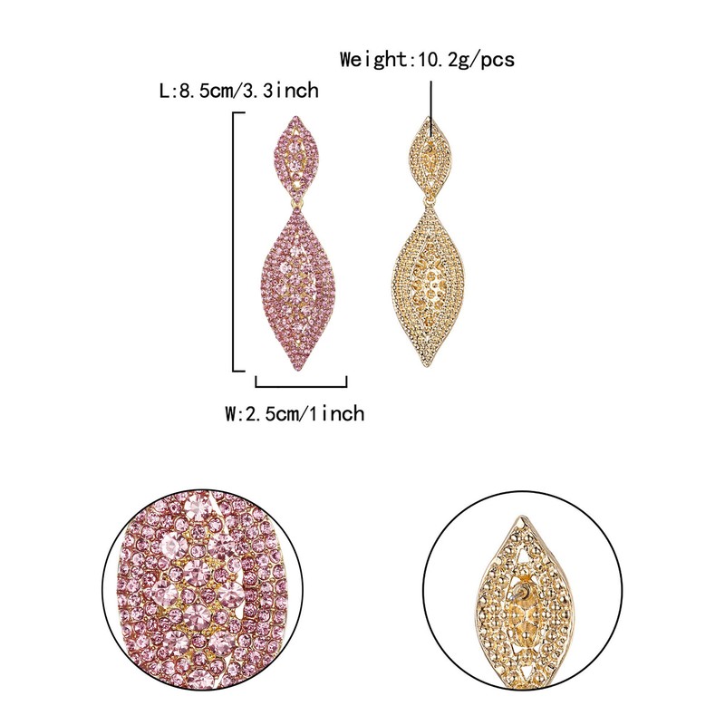 Flyonce Women's Rhinestone Crystal Wedding Bridal 2 Leaf Drop Dangle Chandelier Earrings Pink Gold-Tone