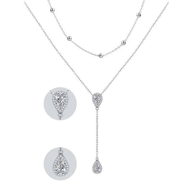 Flyow Layered Necklace S925 Sterling Silver Teardrop Double Choker Y Lariat Necklace Jewelry Gifts for Women
