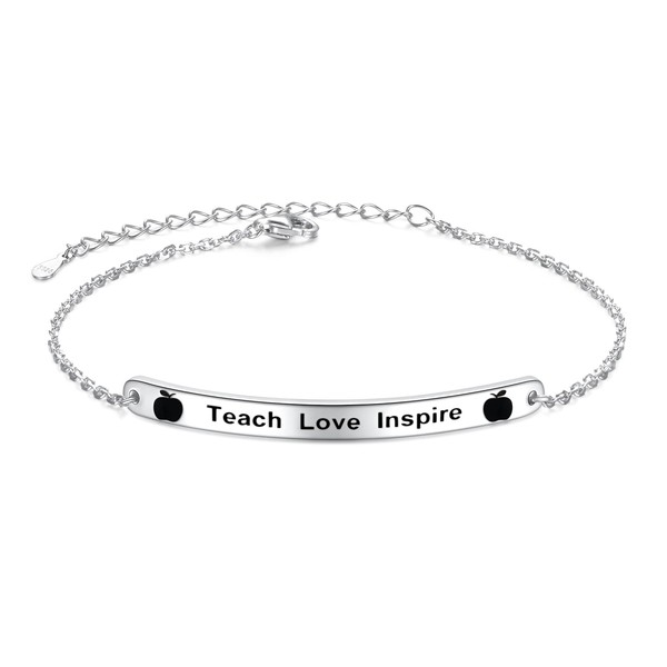 - Design: Dear teacher, you taught me, inspired me guided me, encouraged me pushed me to do my best. This engraved Teach Love Inspire Apple Bracelet is perfect gifts for our great teachers, or someone who teach help you a lot: mother/ nana/ sister/ friends/ auntie/ senior female schoolmate.