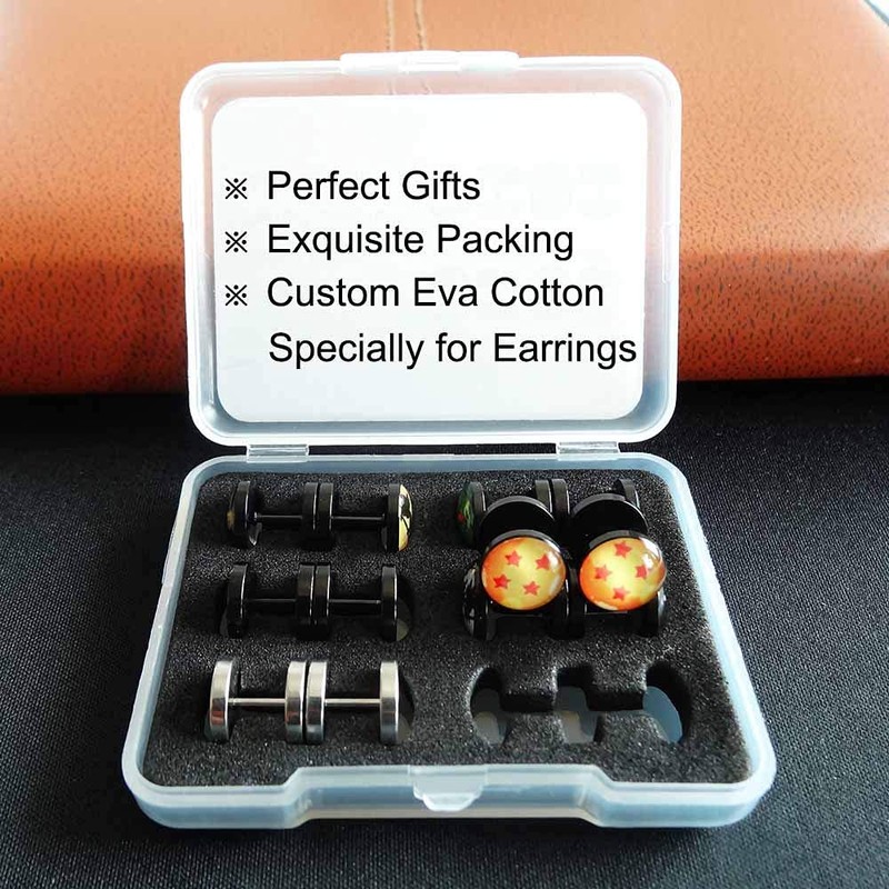 - 6 Pairs Anime Earrings Set ❤ 6 Styles Stainless Steel Fake Ear Gauges Screw Stud Earring with Unique Logo Design (No Duplicates), and the other two pairs without Logo