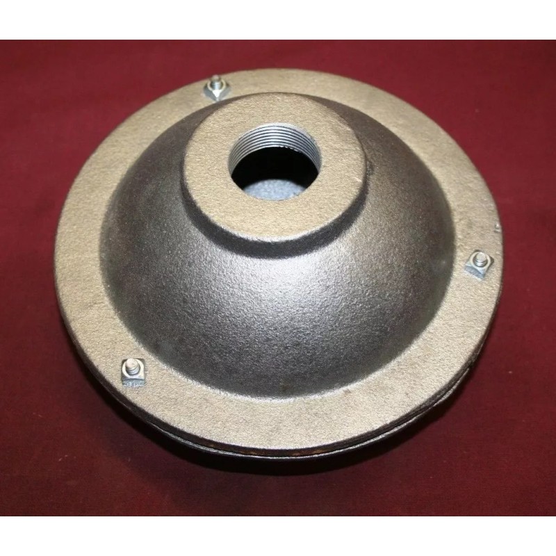 Description: 9" Cast iron ball muffler for various engines. This muffler is " Female threads and has period correct square head nuts and bolts.