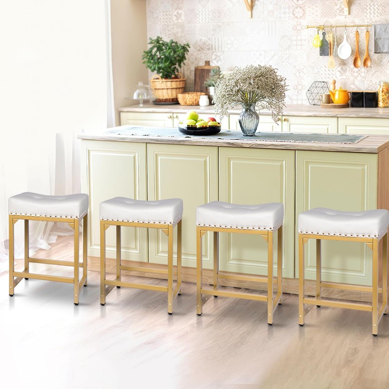 - 【Triangular Load-bearing Design】These gold white counter height stools with 4 triangular load-bearing designs, provide the safest security no matter what kind of sitting position. Barstools frame bases take chromed metal steel frames and quality craft welding technology. These counter stools set of 4 can be used for years without problems