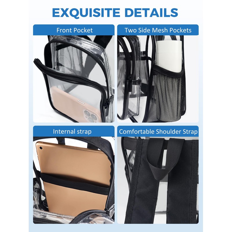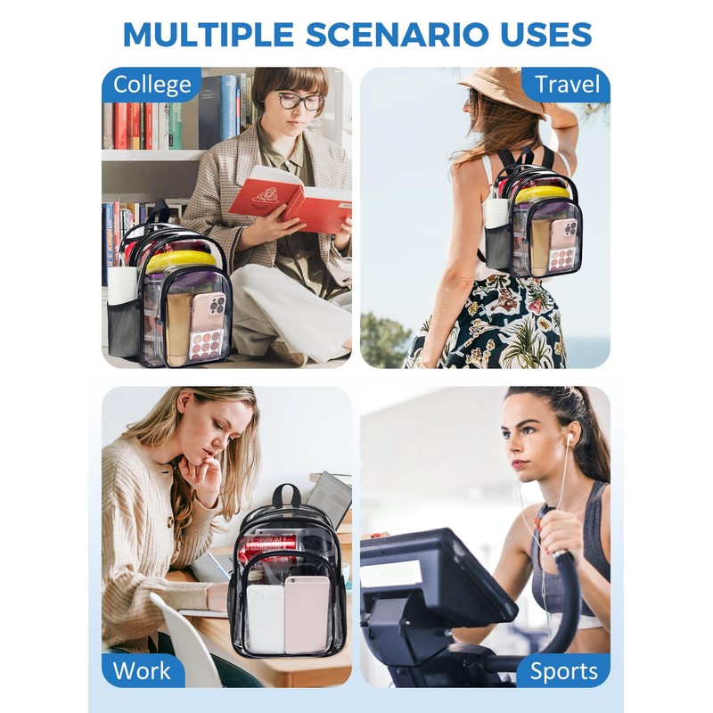 - 【Great Gift】:The transparent design makes it easy to find your belongings, the reinforced sewing and quality zipper makes the backpack can be used for a long time. This clear backpack will be a perfect gift to give your kids, friends and family members