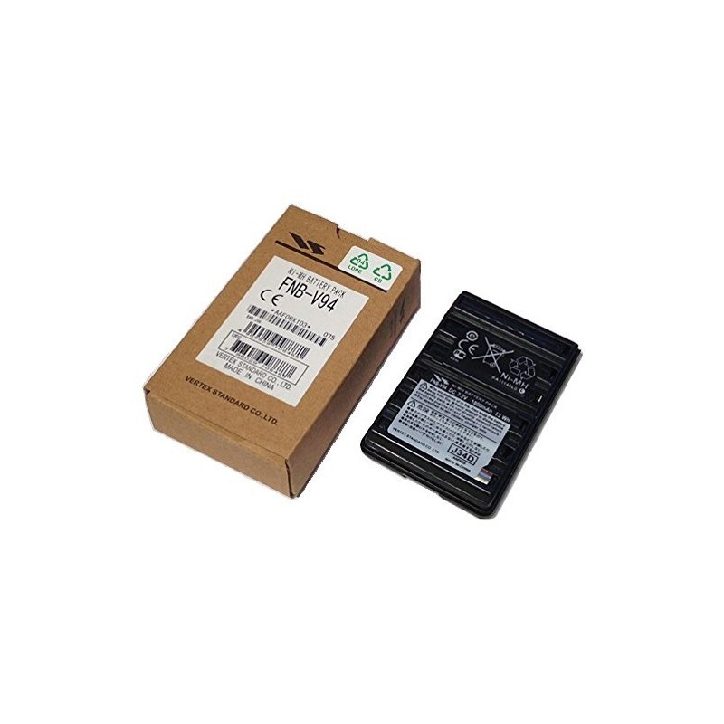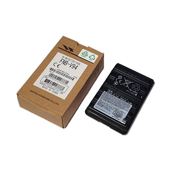The FNB-V94 is a Vertex Standard brand rechargeable 7.2 volt 1800mAh NiMH battery pack. Long-life, high-watt, and memory-free. It fits Yaesu and Vertex handheld radios such as FT-60R, FT-270, FT-277, VX-110, VX-120, VX-150, VX-160, VX-170, VX-177, VX-210A, VX-250, VXA-120, VXA-150, VXA-200, VXA-210, VXA-220, VXA-300. This battery can be recharged with OEM charging stands, or ti can be re-charged through your radio (if your radio possesses a plug-in wall charging feature). Stocked & shipped by BATTERIES AMERICA.
