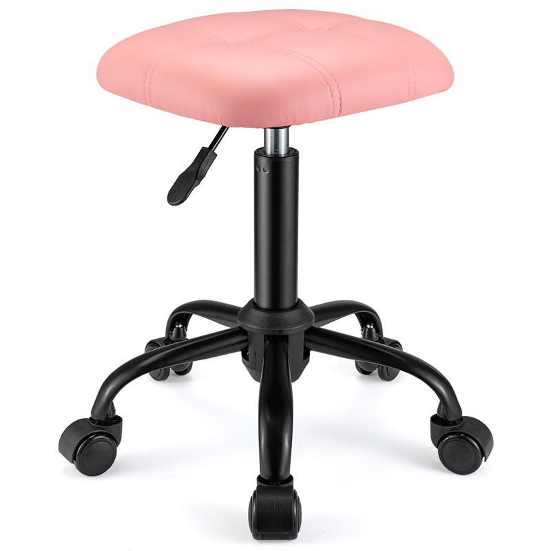 FNZIR Square Rolling Stool with Wheels Height Adjustable Swivel Stools Office Chair Pink