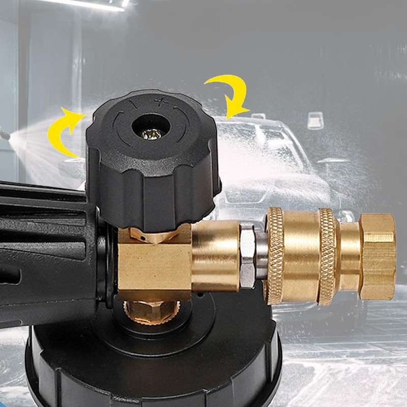 - 【Easy to Use】Equipped with 1/4 inch quick connect accessories, which can be connected to a high pressure washer gun or extension wand, adjust the knob to achieve the required foam level, and adjust the adjustable nozzle to change the spray width and angle as needed.