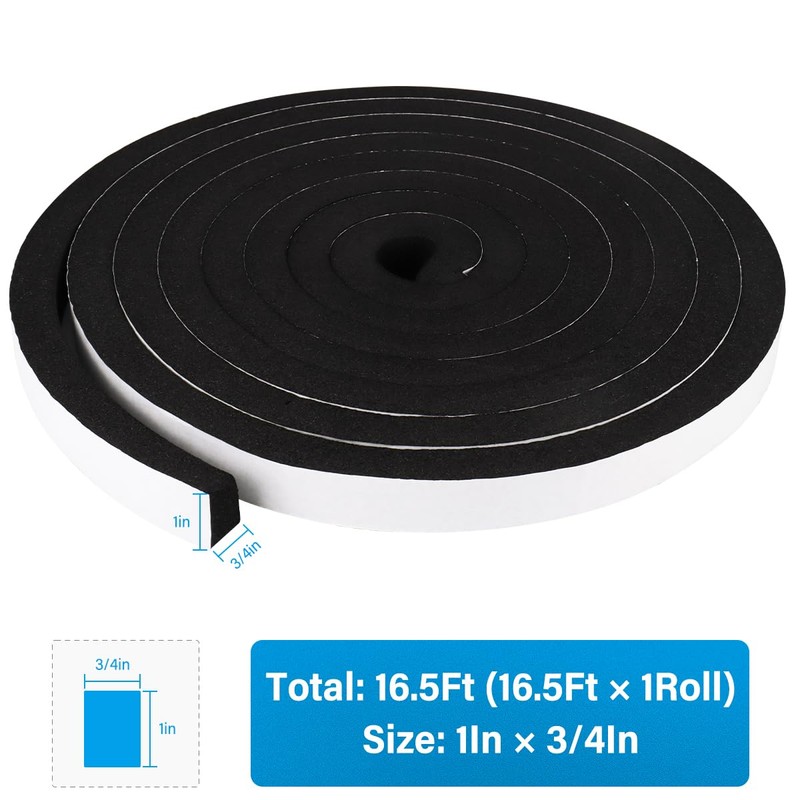 Foam Insulation Tape, Weather Stripping Door Seal Strip for Doors and Windows,Sliding Door,Sound Proof Soundproofing Door Seal,Weatherstrip,Air Conditioning Seal Strip (1In x 3/4In x 16.5Ft)