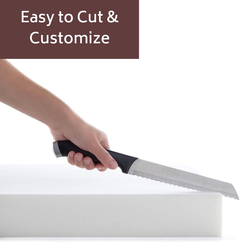 • EASY TO CUSTOMIZE: Our foam is easy to slice through with tools such as a sharp knife, serrated knife, electric knife, or electric hot wire foam cutter. You can trim the edges or stack layers for extra thickness to customize our foam in a way that perfectly meets your needs. Foam can also be glued together to create wider pieces or layered upon one another to create thicker cushions. Foamrush foam can be cut and customized to whatever size or shape you need.
