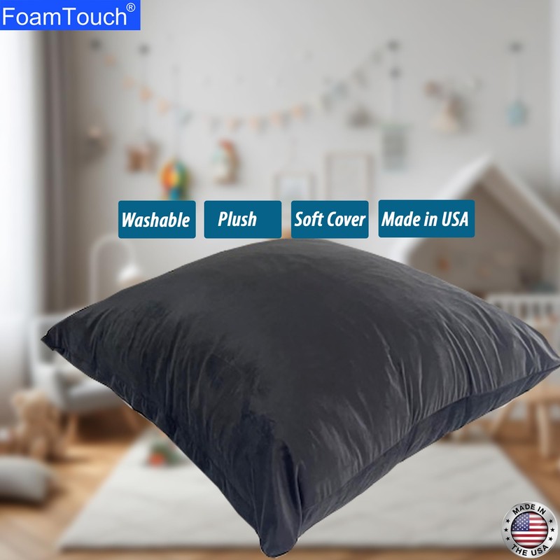 FoamTouch 40" x 40" Black Crash Pad with Foam Blocks for Kids and Adults - Therapeutic Sensory Pad with Washable Cover-Black