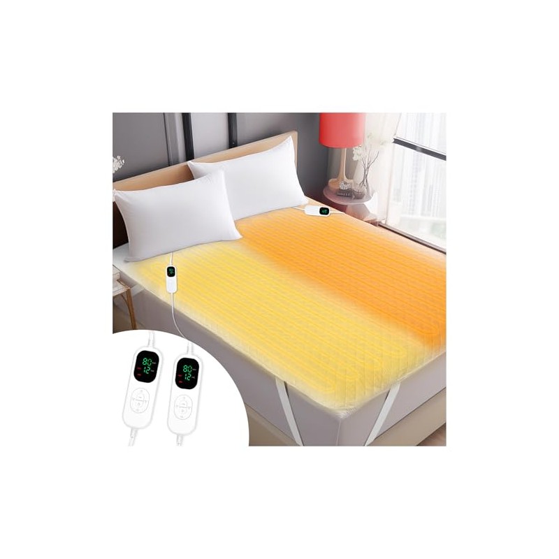 Heated Mattress Pad Queen 80"×60", Fits Mattresses up to 25.6" Deep, 10 Heat Settings, Dual Controllers, Fast Heating, Memory & Preheat Functions, 12-Hour Auto-Off