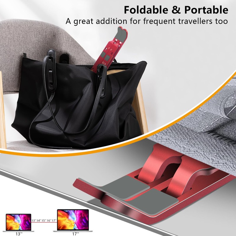 FOBELEC Laptop Stand, Computer Tablet Stand, Adjustable Aluminum Foldable Portable Laptop Holder Riser, Compatible with MacBook Air Pro, Lenovo, HP, Dell, More 10-15.6” Laptops and Tablets (Red)