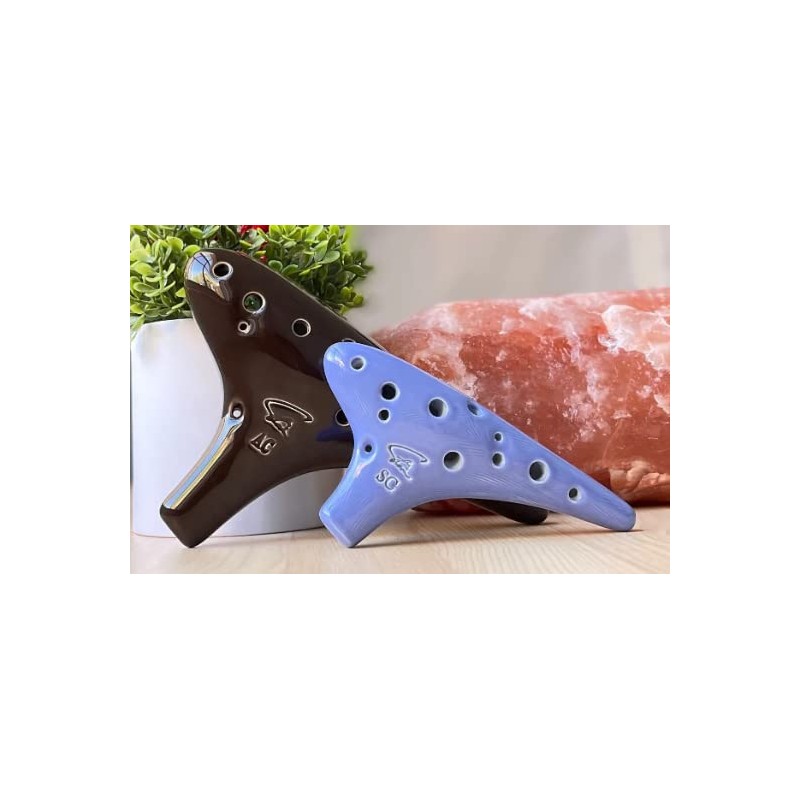 Focalink 12 Holes Alto C + Soprano C Ceramic Ocarina - Easy to Learn, Good for Beginner (Brown/Blue)