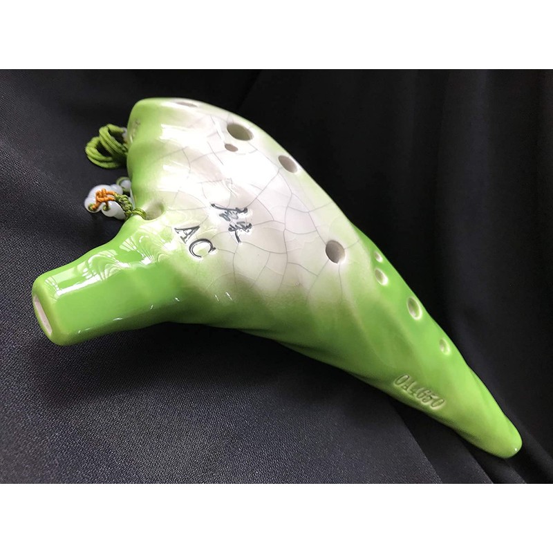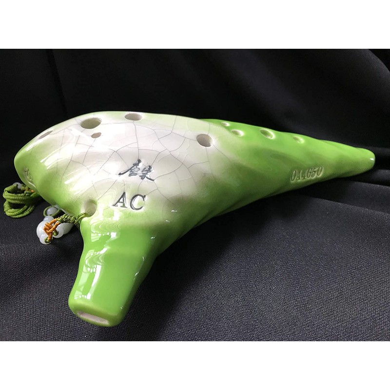 Focalink Professional 12 Holes Alto C Green Glaze W/Natural Crackles Ceramic Ocarina W/Hard-shell Case. Authenticity Proved by Engraved Identification Code on Each Piece! Linn's Arts Exclusive!