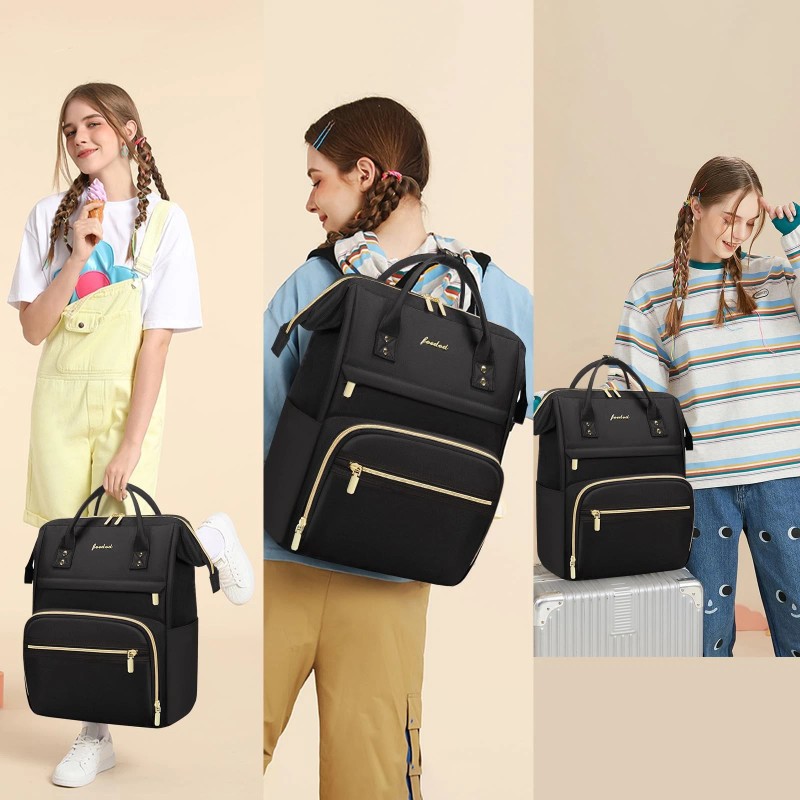 Serviceable Material & High Quality Backpack: This best business backpack is made of waterproof nylon material which makes it easily to wipe down to clean. The mail stitching is neat, it would hold up well over extended use. The shiny gold zippers operate smoothly and easy to hold. It also has two sturdy top handles to gives you multiple ways to hold this laptop bag tote. It is so spacious and lightweight to take this casual woman backpack daypack outdoor