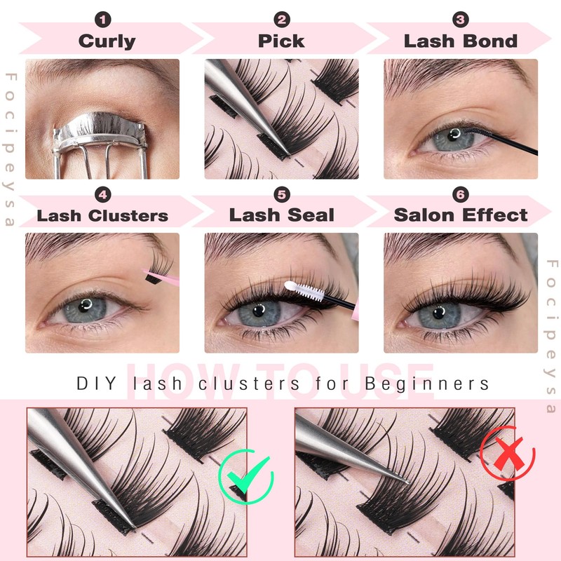 - 【Enhanced Soft Mink Fiber Construction】: Crafted with top-quality fibers, Focipeysa cluster lashes are incredibly lightweight and gentle on the eyes, ensuring zero discomfort or that weighed-down feeling. Wear them all day without any fatigue or awareness of their presence