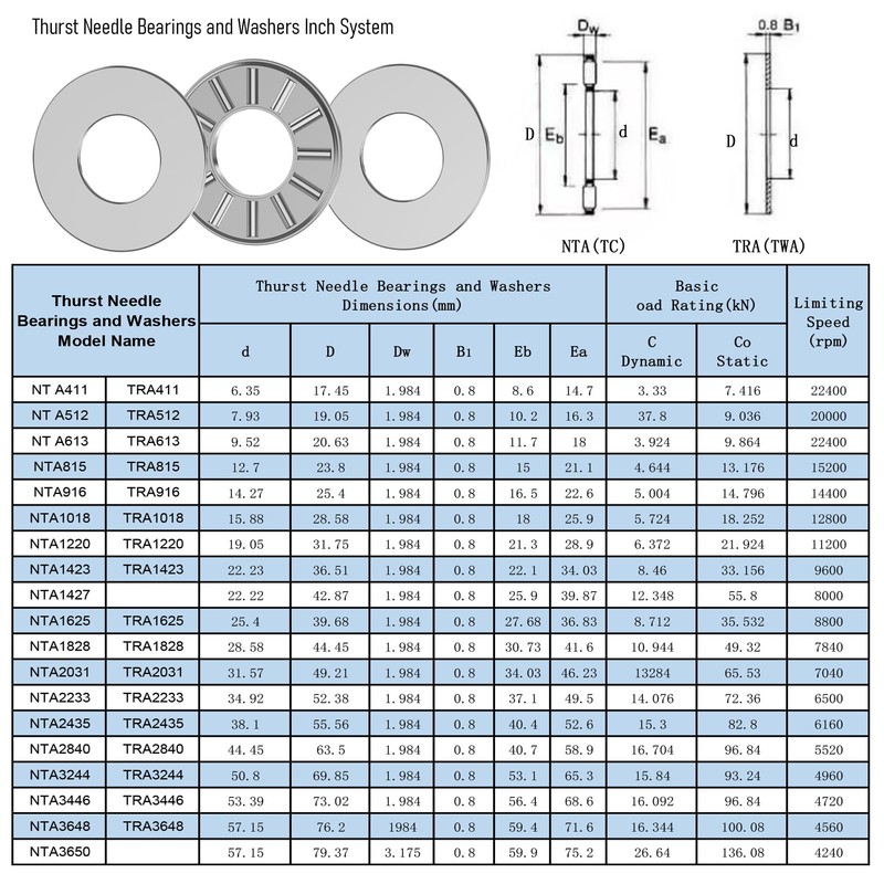- 【Package & Size】1 piece NTA1625+2TRA Thrust Needle Roller Bearings. I.D.=1-inch,O.D.=1-9/16-inch,Thickness=5/64-inch; Washer Model: TRA1625