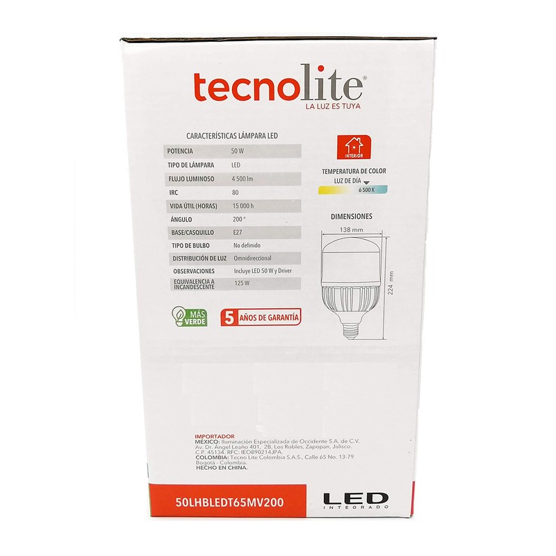 Foco Led Tecnolite 50w Luz Fria Blanca 4500 Lumenes E27 Alta potencia